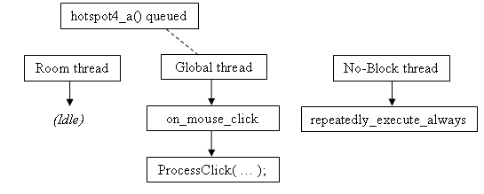 Cependant, ce n'est pas le cas. C'est toujours le fil global qui apelle ProcessClick,